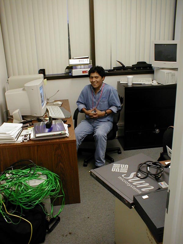 week.Just in time for Terra's leaving the facilities, IDT installed a new air conditioning system to keep the room cool. (I wish I got a picture of the room when it was full of room fans...) Still, you can see the picture of the supplimental air conditioner next to the drive array.