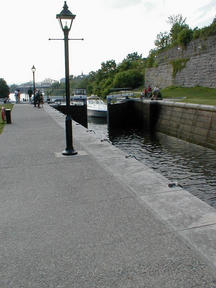 The start of the canal is a set of locks leading away from the river.
