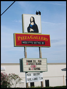 I got a kick out of these pictures. We spotted this on the drive. Buzzards on the piza shop sign. Nice...