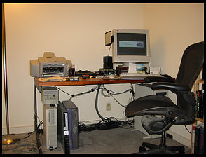Here's a picture of my current den/lab. Well, just the desk and toys,