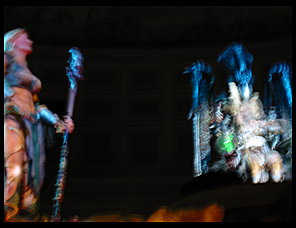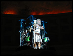 The other show is The Fall of Atlantis. I wasn't set up to take decent pictures of this show, as the room was darkened completely for the show. Makes sense, since fire is more dramatic in the dark. But my camera was not up to the task... <sigh>