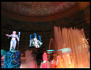 Not that it's obvious, but the statue of Bacchus, Venus, Apollo and Plutus behind Lisa has it's own show every day on the hour.