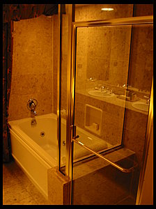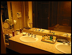 The room was pretty nice, we were up on the "penthouse" level of the hotel, so the room was a little fancier. The biggest difference was in the bathroom, with a jacuzi tub and a seperate shower.