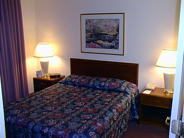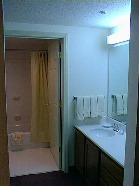 Here you can see the room from the doorway. What may not be obvious is one of the greatest features of this hotel. The Television! Those of you who've been on the road will understand. TV makes it better. <grin> The nice thing about the Residence Inn is that they have a more complete cable channel selection. For a guy, access to ESPN2 can be very important. As a bonus, they also carry The Cartoon Network. How much more could a guy ask for?