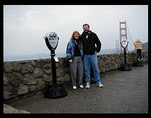 Well, four years later I finally get back to the Bay Area. Work had me in meetings last Wednesday through Friday, so I stayed the weekend to play. Lisa came out to play too, and you can see us here at the Golden Gate bridge. Pictures are online, of course...